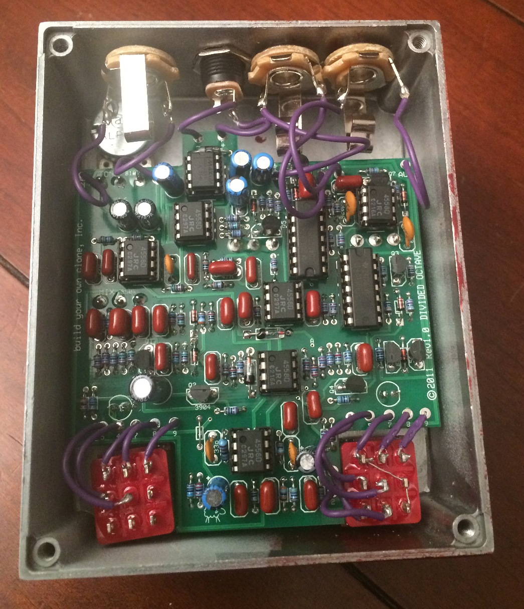 This is a really funky pedal, based on the old Mutron Octave Divider. To be honest, I am not exactly sure what I would use it for, but that’s not REALLY the point, is it. Octave up and Octave Down, plus a Green Ringer built in. I imagine a better or more creative bassist would use the heck out of this, but for me, its just fun. For all of the components, a pretty easy build, thanks to VERY detailed instructions from BYOC.